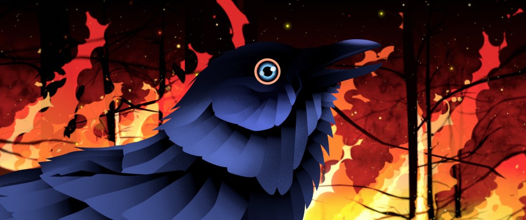 A remembrance of the Yellowstone fire that raged unabated for months engulfing the Park until a winter snow of intense severity extinguished the flames. That winter surviving Fauna exhausted from fire and weakened by hunger fall where standing. The cosmos turns and eventually life in the park begins anew.