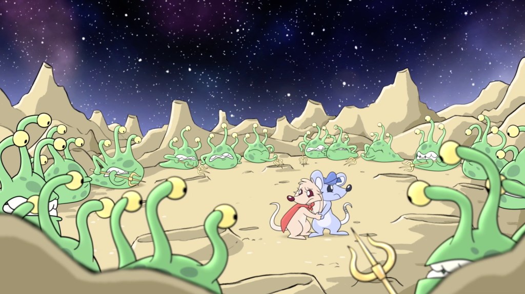 Two little mice build a cardboard rocketship to go to the moon. Why you ask? Well for the cheese of course! However, they are captured by Moon Men and must work together to escape. It’s a light hearted and fun filled animated adventure!